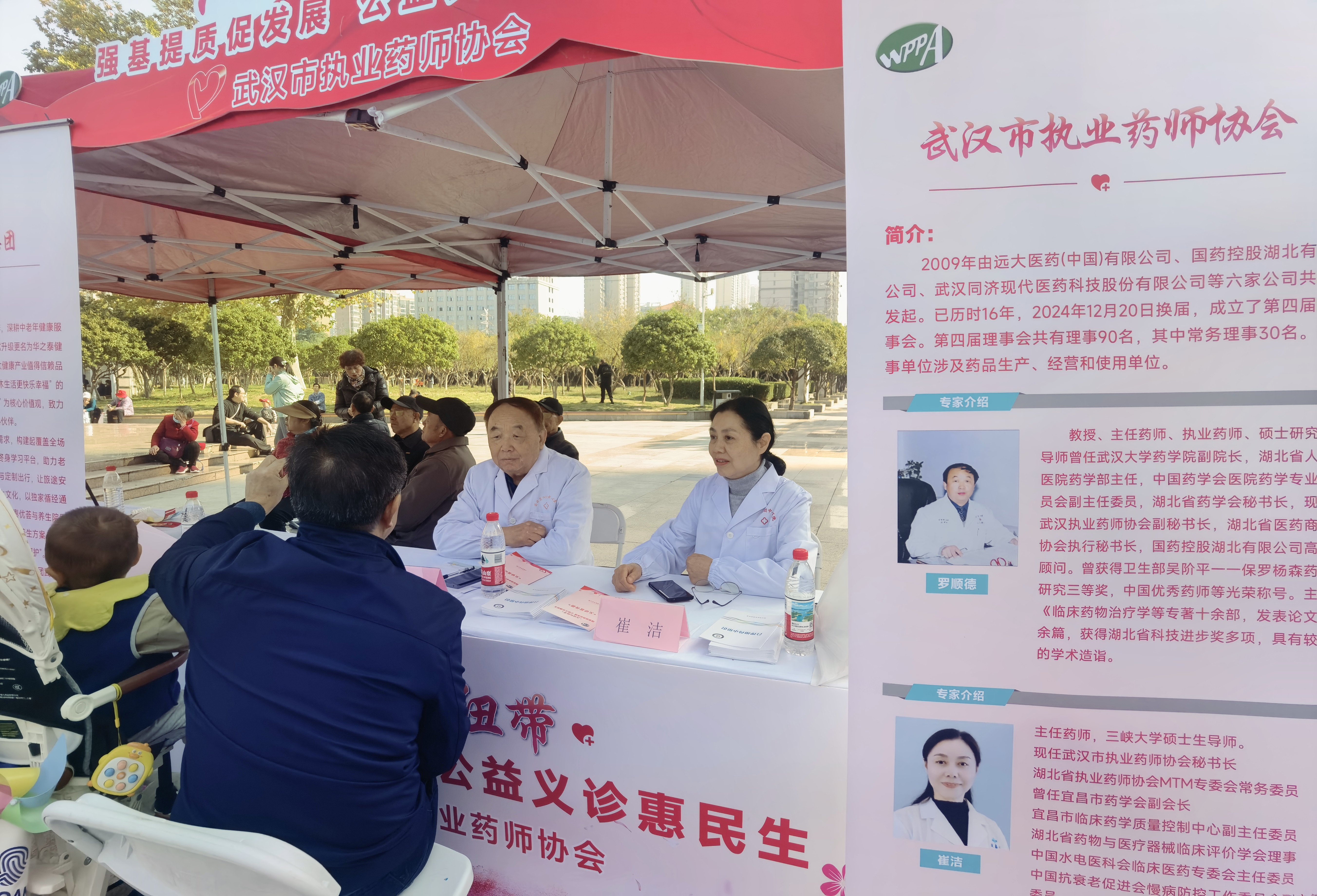 为响应“强基提质促发展 公益义诊惠民生”的活动号召,2025年11月21日上午,武汉市执业药师协会组织专业力量,参与了在江夏新世纪公园广场举办的“江城红纽带”公益义诊活动。