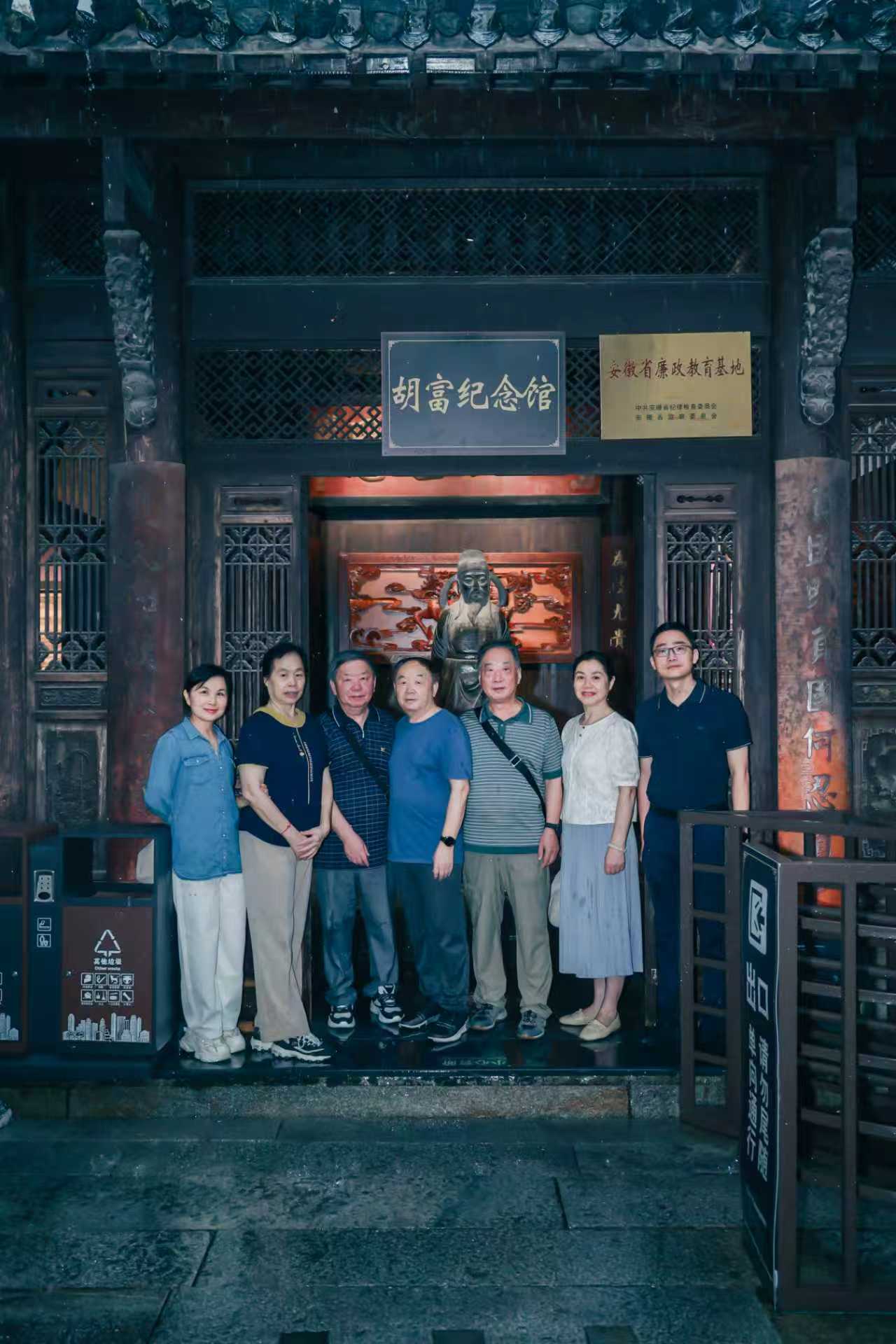 在胡富纪念馆(安徽省廉政教育基地)门前,协会党员们集体合影留念。步入馆内,大家通过“少年神童、公正执法、刚正不阿、勤政爱民”四个展区的史料、雕塑与场景复原,深入了解胡富的生平事迹:他34岁中进士,为官40载,创立“五复核”审案制度平反百余起冤狱,推行“安边三策”化解民族矛盾,以“三制鼎革”让南京太仓积粟可供六年之需;面对权阉刘瑾的威逼,他坚守“宁为玉碎”的气节,致仕归乡时仅带“二十四担书籍”,还捐俸修桥惠泽桑梓,被百姓赞为“千年再世一包公”。